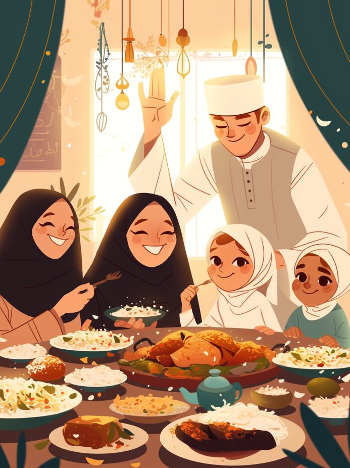 Sharing a meal with family is a simple yet meaningful moment. In Muslim family traditions, sitting together at the dining table is not only an opportunity to enjoy food but also a chance to strengthen bonds and instill life values. Imagine a family gathering, exchanging smiles, and savoring every bite of food with gratitude. In such moments, there are no barriers between parents and children. Everyone shares stor...